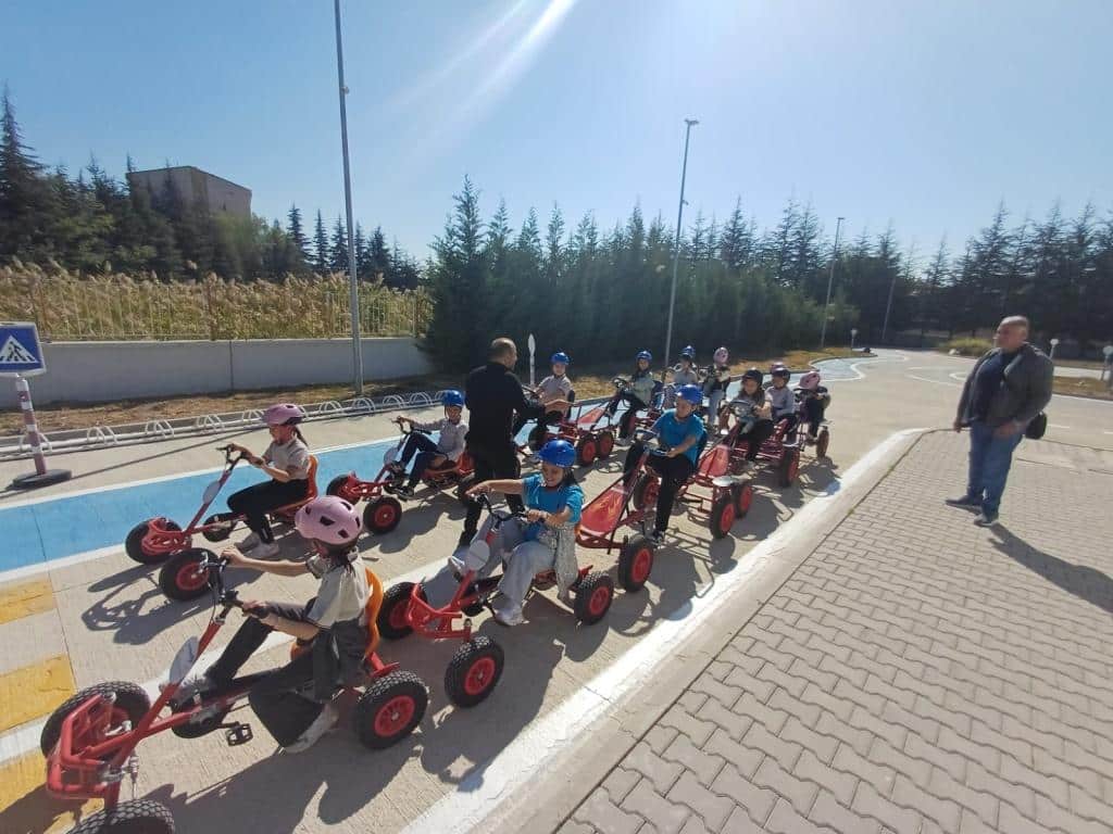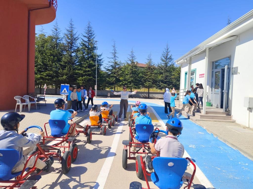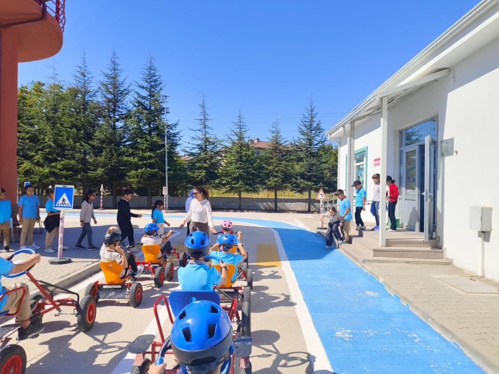 Okulumuz 4.Sınıf Öğrencilerine Trafik Bilincinin Küçük Yaşlarda Kazandırılması Amacıyla Çocuk Trafik Eğitim Parkı'nda Uygulamalı Trafik Kuralları Eğitimi Verildi.